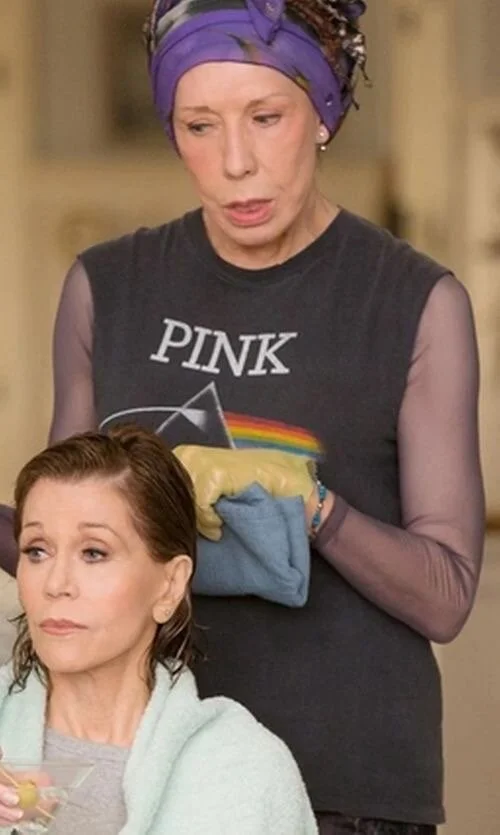 A point hit on numerous times in the series, talks about how people, usually women, over 60 years old are often discounted or ignored. Jane Fonda and Lily Tomlin's characters confidence alone inspires me to take risks in how I carry myself. In this case, specifically in fashion. My personal style aligns more with Tomlin's character Frankie, and I have taken note of her various playful takes of outfits with a mesh top layered underneath.