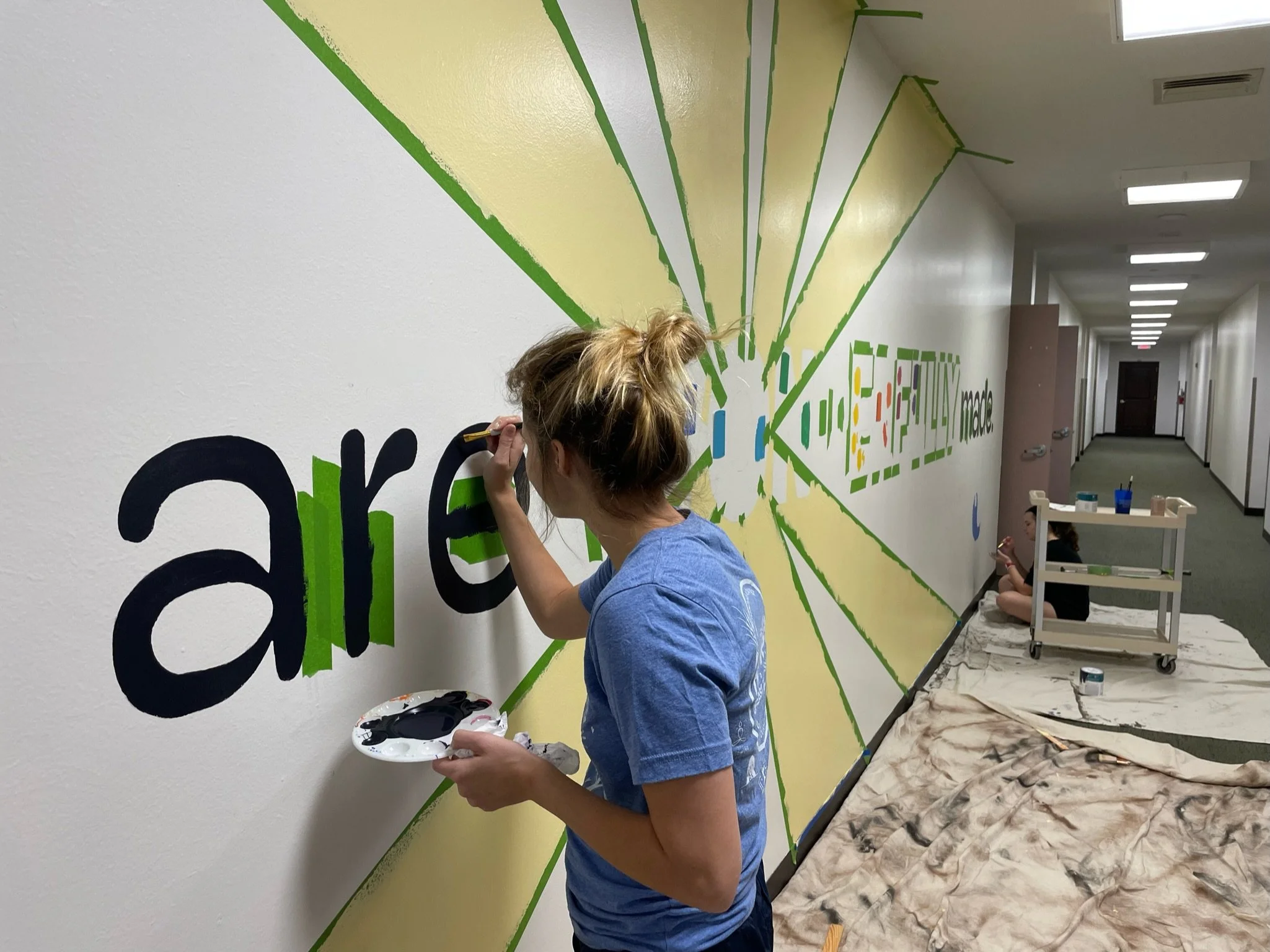 I value working on a large scale and collaborating to create an impactful visual showcasing the brand’s mission. These various projects have been completed over the years. I find joy in creating a system or a unique piece. From there I coordinate installation, whether that means painting a 29-foot-long mural or finding a local production company to create a temporary piece.